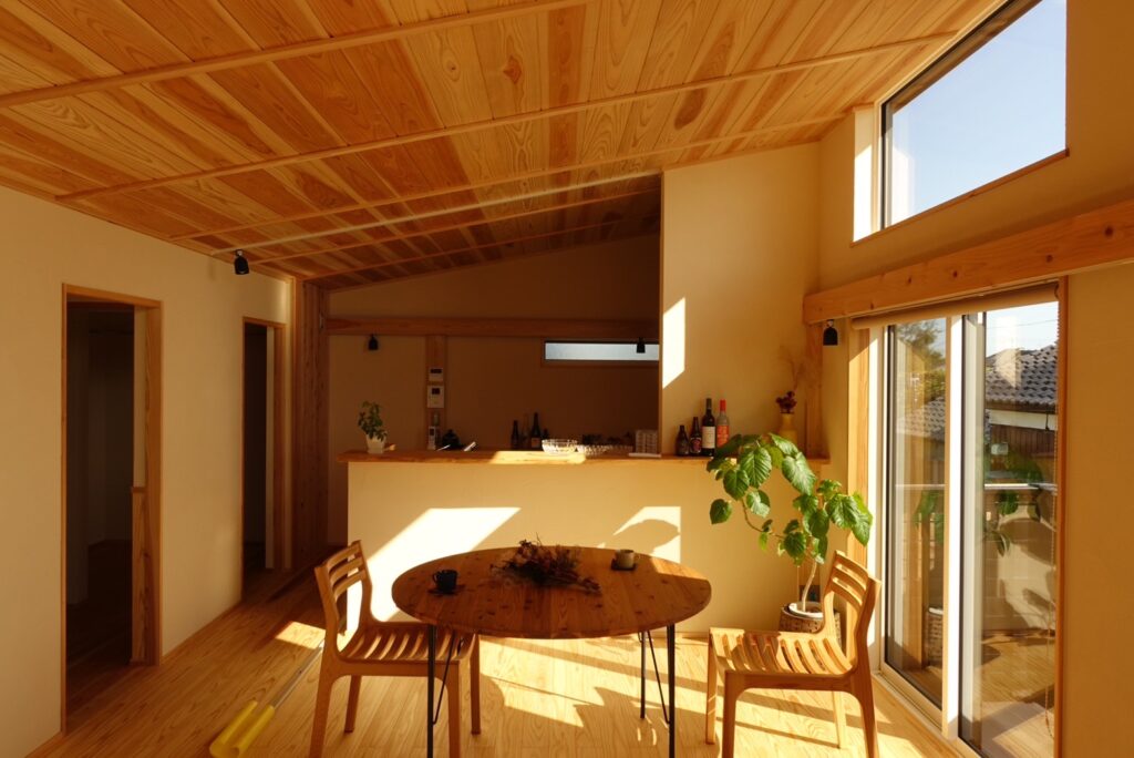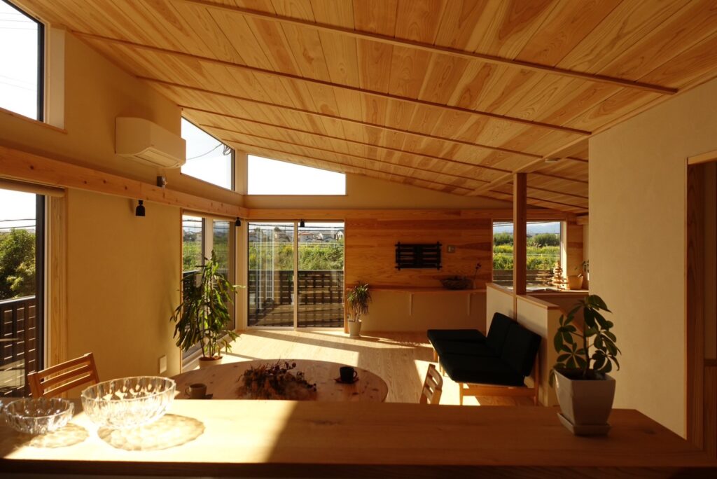 スタッフブログ STAFF BLOG 「七ノ家」~多賀城・設計住宅~ 2025.10.09 ミヤザキチハル スタッフブログ こんにちは!宮です。 今日は土地探しからお手伝いし、もう間もなく完成を迎える多賀城市の設計住宅。 名付けて「七ノ家」についてご紹介させていただきます。 こちらは 2階リビングのお住まい。 土地探しも2階リビングを考慮して様々な土地をご家族と一緒に検討していきました。 実は、2階リビングには土地探しの段階から大きなメリットがあります。 現在は土地や建物の価格が高騰しており、南面道路や整形地といった条件の良い土地はより金額が高いです。 難しい条件の土地を検討するケースも多くなっています。 例えば、狭小地や隣家までの距離感があまりないような難しい敷地条件の場合、1階リビングでは「隣家が近く日射が入りにくい」「目線が気になる」といった悩みが出てきます。そこで リビングを2階に上げることで、日当たりやプライバシーの確保といった課題を設計の工夫で解決できるケースが 多く、「1階リビングではおススメできないけど2階リビングならおススメできる」といった土地は多いです。 今回の敷地はまさにそんな土地でした。 敷地条件は南側に隣家があり、西側は車通りの多い場所でした。 そのため1階リビングの場合は、隣家・道路からの目線が入りやすい敷地条件です。 一方で、道路の先には七北田川が流れており、2階リビングとかなり相性がいい敷地条件でした。 ご家族も、この作戦にのっていただきプランニングがスタートしました。 南西方向は、1階では道路に面しているため大きく開くことはできませんが、2階に上がると視界が一気に広がり、遠くまで見渡すことができます。 その敷地条件を最大限に活かし、2階の窓を配置しました。 また、視界の抜けと合わせた屋根をかけます。 外観のアクセントにもなる板張りは、中にいると道路からの目隠しとしても活躍してくれます。 一つ一つ根拠を込めて組み立てていきました。 いざ着工です! 現場の一コマ。 足場の外れる前から、2階の眺望が広がっておりました! キッチンからの眺めです。 七北田川方向に開放感あふれるリビングになっています! ☟完成はこんな感じ。敷地条件を最大限活かした贅沢空間です。 さくっとルームツアー動画はこちらから✅ こちらのお住まいはご家族のご厚意もあり、引き渡し前に見学会を開催させていただけることになりました! 10/18,19(土日)まだ空きはあります!! 是非、 土地探しで悩んでいる方 2階リビングを検討されている方 景色いい住まいを検討されエイル方 様々な方にご参考になる見学会だと思いますので ご予約お待ちしております! 夜の様子もお届け よみもの一覧へ タグ タグ一覧 mimimi.garden Kanamedesigns TIKTOK Vlog ★ toolbox YouTube 2024年 アオバクラフト アウトドア 最新記事 【青い森から】建築にできること 歴史をつなぐリノベーション 【つながり紹介】KANAME DESIGNS ~すまい手アドバイザー編~ 【ヒゲメガネの暮らしを取り戻そう‼】”こだわりの家”について iPhoneのカメラロールが仕事中の写真でいっぱいです 入社から半年、一番のやらかし テーマ 小野幸助ブログ (61) スタッフブログ (474) ゼロノワ不動産ブログ (265) ZCGコラム選 (15) 呼び覚ます建築 (5) アーカイブ 2025年(100件)10月(8件)【青い森から】建築にできること 歴史をつなぐリノベーション【つながり紹介】KANAME DESIGNS ~すまい手アドバイザー編~【ヒゲメガネの暮らしを取り戻そう‼】”こだわりの家”についてiPhoneのカメラロールが仕事中の写真でいっぱいです入社から半年、一番のやらかし「七ノ家」~多賀城・設計住宅~「ヤマモト山荘」~山元・設計住宅~タケ⑦9月(5件)〖ゼロノワの小窓〗2025.9月号零の提案型住宅見分けられますか最新のぜろクラフト通信と最近のお昼ごはん秋保で新生活を始めませんか?8月(14件)実は…〖ゼロノワの小窓〗2025.8月号今後の目標γ-GTPだのChatGPTだのすまい手さんと食育イベント。収穫が待ち遠しいお盆中のお話しひと時のお盆休みタケ⑥~私のお盆休み!!!!~青森設計室もスタッフ募集してます!!ヒラヤマさんにつづいて私たちと働いてみませんか? インターンシップのすゝめ青森で1番くらいに人が多い時期ぜろマルシェ初開催!の様子と、この夏のおススメドリンクタケ⑤~見学会編~「パノラマハウス」~多賀城・設計住宅~7月(15件)〖ゼロノワの小窓〗2025.7月号ワクワクする場所のハナシ模型についてパノラマとペプチドタケ④(阿部ちゃんに被せて草刈りについて)山元町といったら?誰でも農地が購入できるんです今年も目指します知事賞を最近蒸し暑いですね蔵の改修工事を終え、お引き渡し。「予防空き家」を流行らせたいと強く思った朝。タケ③今年も草の季節が伐採体験ツアーに行ってきましたはじめまして6月(17件)この時期がやってきました!〖ゼロノワの小窓〗創刊!!市制施行してもうすぐ100年になるそうです山元町のホームページを見ていたら坂を下った先にある、空。公共交通機関で空見の