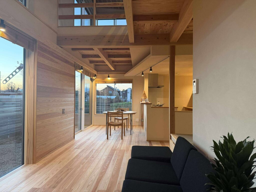 スタッフブログ STAFF BLOG 囲の家|暮らしの足あと 2025.11.22NEW ミヤザキチハル スタッフブログ こんにちは!宮です。 最近はめっきり寒くなりましたね・・ 体調にお気をつけてお過ごしください! 今日は土地探しからお手伝いし、もう間もなく完成を迎える袋原の設計住宅。 名付けて「囲の家」についてご紹介させていただきます。 今回ご紹介するお住まいは、1階にリビングや水廻りを集約した、プランになっています。 アウトドアがお好きなご家族と一緒に、通勤やご予算といった条件を踏まえつつも、自然を身近に感じられるようなロケーションを探していきました。周囲に圧迫感がなく、緑を感じられるような土地が見つかり、計画がスタート!していきました。 今回の敷地は道路の一番奥に位置しており、南側と西側には抜け感のある開放的な景観が広がっており まさに、利便性と自然豊かさを兼ね備えた場所です! 道路側から敷地を見ます。 北・東は隣家が立ち並ぶ一方、南は駐車場・西は田んぼという敷地。 地鎮祭の時、お子さんが西の田んぼに向かって走り出すくらいに広がる田園風景(^^) 1階に水廻りという条件をうまく活用して プランをL字にすることで近隣から視線を遮ります。 開かれている南・西方向には窓をたくさん設け、お庭とつながるような計画をしています! 1階・2階も外に視界が広がり、坪数以上に広がり感を感じるお住まいです。 F様ご家族がみんなで食卓を囲む様子がうかがえます。 これからF様色になっていくことが楽しみです(^^) こちらのお住まい、お施主様のご厚意もあり 今週末11/22-24(土-月)に見学会を開催させていただけることになりました。 ありがとうございます(__) まだ少し空きがありますので 是非、零の1階リビング・自然を感じるお住まいご体感ください! お待ちしております! 宮 よみもの一覧へ タグ タグ一覧 365ぜろクラフト通信 mimimi.garden Kanamedesigns TIKTOK Vlog ★ toolbox YouTube 2024年 アウトドア 最新記事 囲の家|暮らしの足あと 私の本棚とお気に入り② 私の本棚とお気に入り① TALK SESSION -楓の下に集い まちに開く- タケ⑧~お休みの1日~ テーマ 小野幸助ブログ (61) スタッフブログ (478) ゼロノワ不動産ブログ (267) ZCGコラム選 (21) 呼び覚ます建築 (5) アーカイブ 2025年(115件)11月(11件)囲の家|暮らしの足あと私の本棚とお気に入り②私の本棚とお気に入り①TALK SESSION -楓の下に集い まちに開く-タケ⑧~お休みの1日~〖ZCGげんば探訪記〗創刊!!私のお話相手になってくれますか母校訪問してきました最近の零のこと小野寺日記_17「炎の男 ペイ」10月(12件)〖ゼロノワの小窓〗2025.10月号古民家ゲストハウス『アゼミチタベネル』~木材の”はじまり”を知る旅へ~ 伐採体験レポート【ゼロノワ不動産の知っ得コラム】 ~零の家、アオバクラフトの家だからこそ~【青い森から】建築にできること 歴史をつなぐリノベーション【つながり紹介】KANAME DESIGNS ~すまい手アドバイザー編~【ヒゲメガネの暮らしを取り戻そう‼】”こだわりの家”についてiPhoneのカメラロールが仕事中の写真でいっぱいです入社から半年、一番のやらかし七ノ家|暮らしの足あとヤマモト山荘|暮らしの足あとタケ⑦9月(5件)〖ゼロノワの小窓〗2025.9月号零の提案型住宅見分けられますか最新のぜろクラフト通信と最近のお昼ごはん秋保で新生活を始めませんか?8月(14件)実は…〖ゼロノワの小窓〗2025.8月号今後の目標γ-GTPだのChatGPTだのすまい手さんと食育イベント。収穫が待ち遠しいお盆中のお話しひと時のお盆休みタケ⑥~私のお盆休み!!!!~青森設計室もスタッフ募集してます!!ヒラヤマさんにつづいて私たちと働いてみませんか? インターンシップのすゝめ青森で1番くらいに人が多い時期ぜろマルシェ初開催!の様子と、この夏のおススメドリンクタケ⑤~見学会編~パノラマハウス|暮らしの足あと7月(15件)〖ゼロノワの小窓〗2025.7月号ワクワクする場所のハナシ模型についてパノラマとペプチドタケ④(阿部ちゃんに被せて草刈りについて)山元町といったら?誰でも農地が購入できるんです今年も目指します知事賞を最近蒸し暑いですね蔵の改修工事を終え、お引き渡し。「予防空き家」を流行らせたいと強く思った朝。タケ③今年も草の季節が伐採体験ツアーに行ってきましたはじめまして6月(17件)この時期がやってきました!〖ゼロノワの小窓〗創刊!!市制施行してもうすぐ100年になるそうです山元町のホームページを見ていたら坂を下った先にある、空。公共交通機関で空見のいえに行ってみたほぼ夏な青森のこの頃タイトルを「タケ」にしていきます。こんにちは、はじめまして!4人目らしいですよ新しい趣味始めました。SAUNA本日6/10、18:15あたりからのどこかで企画広報チーム、外にどんどこ進出中。ヘビが苦手な方、写真ご注意ください。初めまして。始めました。「A-wood」青森県産木材を積極的に!5月(14件)写真の撮り方にもいろいろありますなんとかしたい、空き家や相続お引き渡し 蒼の家キラキラな新人さんたち小野寺日記_16小野 航