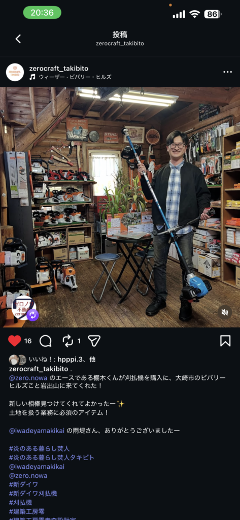 ゼロノワ不動産ブログ ZERONOWA BLOG 『基準』ってありますか? 2025.11.23NEW タナギレン ゼロノワ不動産ブログ こんにちは、棚木です。 突然ですが、みなさんの買い物をするときの『基準』ってありますか? 好きなブランド、コストパフォーマンスが高いもの、できるだけ安く、色、手軽に使えるもの、などなど… 考えたら結構ありませんか、基準。 買うものによっても違いますよね。 自分の話ですが、洋服はそこまで高価なものでなくて良いと思ってます。ただ、靴は良いものを履きたい。だからちょっとお高めのものを選びます。 洋服は中古品でもイイと思ってます。ただ、まだまだ使えそうなものを選びます。(なんて欲張りなんでしょう) お財布は良いものを身に着けます。皮でできたいいやつ。 食品を買うときは国産のものを、と思いつつも場合によっては海外産の時も。 これを読んでいる方の中には「中古の服なんて絶対無理!」「口にするのは国産だけ!」という方もいらっしゃると思います。 人それぞれ『基準』が違うのってなんだかおもしろいですよね。 最近、新しい相棒(刈払機)を迎え入れました。 これまでは手の届きやすい価格の刈払機を使っていたのですが、やっぱり安い分破損してしまったり重かったりしました。 新しい相棒は機能、重量、性能が全然違います。 何度か作業しましたが、疲労感が全くないんです。 いつまででも作業できる気がするほどに…。 高いもの=良いもの っていうわけではありませんが、これほど体感してしまうとどうしてもそう思ってしまいます。 お店の人の話によると、ちゃんとメンテナンスしたら10年以上使えるらしいです。 どんなものでも、メンテナンスが大事なんですね。 一緒に買い物にいった焚人の佐藤大先輩に撮ってもらいました(笑) めっちゃうれしそうな顔してますね。 メンテナンスも普段の使い方も、これから学んで大切に使うぞ~!! と、今日は基準についてお話しました。 土地探しや家づくりも同じですよね。 基準を見定めて、予算に合ったものを選ぶ。たまには僕のように中古品にする判断も必要です。 そんな家づくりの『基準』を見定めるために超おすすめな 【素材選び教室】 が開催されます!!!! その名の通り、家づくりにおいて素材も重要な基準、どんなものがあり自分たちの基準はどうなのかを知ることができます。 是非ご参加ください。 相棒を迎え入れてから、基準が変わった気がします。 手の届く範囲で、できるだけ良いものを選びたいですね。 よみもの一覧へ タグ タグ一覧 365ぜろクラフト通信 mimimi.garden Kanamedesigns TIKTOK Vlog ★ toolbox YouTube 2024年 アウトドア 最新記事 『基準』ってありますか? 囲の家|暮らしの足あと 私の本棚とお気に入り② 私の本棚とお気に入り① TALK SESSION -楓の下に集い まちに開く- テーマ 小野幸助ブログ (61) スタッフブログ (478) ゼロノワ不動産ブログ (268) ZCGコラム選 (21) 呼び覚ます建築 (5) アーカイブ 2025年(116件)11月(12件)『基準』ってありますか?囲の家|暮らしの足あと私の本棚とお気に入り②私の本棚とお気に入り①TALK SESSION -楓の下に集い まちに開く-タケ⑧~お休みの1日~〖ZCGげんば探訪記〗創刊!!私のお話相手になってくれますか母校訪問してきました最近の零のこと小野寺日記_17「炎の男 ペイ」10月(12件)〖ゼロノワの小窓〗2025.10月号古民家ゲストハウス『アゼミチタベネル』~木材の”はじまり”を知る旅へ~ 伐採体験レポート【ゼロノワ不動産の知っ得コラム】 ~零の家、アオバクラフトの家だからこそ~【青い森から】建築にできること 歴史をつなぐリノベーション【つながり紹介】KANAME DESIGNS ~すまい手アドバイザー編~【ヒゲメガネの暮らしを取り戻そう‼】”こだわりの家”についてiPhoneのカメラロールが仕事中の写真でいっぱいです入社から半年、一番のやらかし七ノ家|暮らしの足あとヤマモト山荘|暮らしの足あとタケ⑦9月(5件)〖ゼロノワの小窓〗2025.9月号零の提案型住宅見分けられますか最新のぜろクラフト通信と最近のお昼ごはん秋保で新生活を始めませんか?8月(14件)実は…〖ゼロノワの小窓〗2025.8月号今後の目標γ-GTPだのChatGPTだのすまい手さんと食育イベント。収穫が待ち遠しいお盆中のお話しひと時のお盆休みタケ⑥~私のお盆休み!!!!~青森設計室もスタッフ募集してます!!ヒラヤマさんにつづいて私たちと働いてみませんか? インターンシップのすゝめ青森で1番くらいに人が多い時期ぜろマルシェ初開催!の様子と、この夏のおススメドリンクタケ⑤~見学会編~パノラマハウス|暮らしの足あと7月(15件)〖ゼロノワの小窓〗2025.7月号ワクワクする場所のハナシ模型についてパノラマとペプチドタケ④(阿部ちゃんに被せて草刈りについて)山元町といったら?誰でも農地が購入できるんです今年も目指します知事賞を最近蒸し暑いですね蔵の改修工事を終え、お引き渡し。「予防空き家」を流行らせたいと強く思った朝。タケ③今年も草の季節が伐採体験ツアーに行ってきましたはじめまして6月(17件)この時期