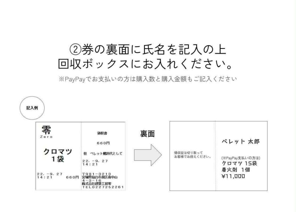 端材薪販売についてのお知らせ 2025.10.23 いつも建築工房零ならびに焚人-タキビト、そしてゼロ村をご利用くださり、心から感謝申し上げます。 建築工房零で家を建てる時に出てくる端材は、地域で取れる木材になります。 産業廃棄物として捨てるのではなく、熱エネルギーとして再利用を進め、無償で提供させていただいておりました。 ただ、端材のカット、運搬、保管にかかる経費などの高騰により今後は有償で販売させていただく運びとなりました。詳細は以下の通りになります。 ■販売開始 2025年10月31日(金)より ■販売価格 1袋1,000円(税込) ■販売時間 9:00〜17:00 ■販売曜日 金曜日、土曜日、日曜日、祝祭日 ■販売場所 ゼロ村のみ ※利府での販売はございません。予めご了承ください。 ■お支払い方法 ゼロ村に設置した券売機での現金、またはPayPayでのお支払いとなります。 【ゼロ村における販売方法】券売機を使用した無人販売となります。 購入手順は以下のとおりとなります。 BACK