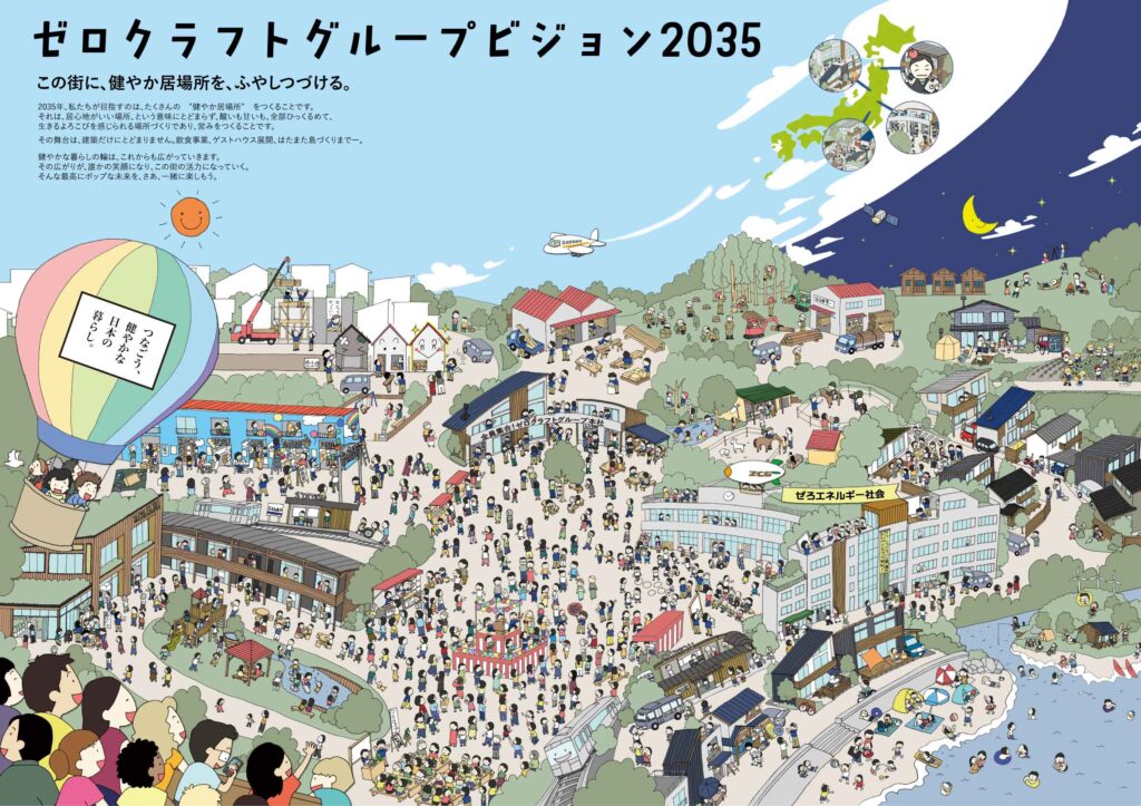 2025年度経営指針発表会開催の御礼とゼロクラフトグループ ビジョン2035お披露目のご案内 2025.11.23NEW 新規事業や地域社会に提案も含まれる「ゼロクラフトグループビジョン2035」をお披露目! スタッフの声が反映されたビジョン発表により、共に歩む地域づくりの方向性を示しました 「地球と暮らそう。- Act local, Think global! – 」を社是に掲げ、宮城県・仙台市・青森県を中心に新築注文住宅やリノベーションなどの設計・施工を行う地域工務店、「建築工房零」(代表取締役社長:小野幸助)は、地域の協力会社や全国の工務店経営者などを招き、「ゼロクラフトグループ経営指針発表会」を2025年11月18日(火)に開催いたしました。経営指針発表会には、建築工房零とグループ会社:アオバクラフトのスタッフ約55名のほか、100社を超える協力会社・すまい手さんが参加されました。会の最後には4名の経営者の方から激励の言葉を賜りました。 当社では、社会性・科学性・人間性に則った経営理念を、スタッフ一人ひとりの自己成長や夢の実現と重ね合わせて活動を続けるため、10年ビジョンを策定しています。2025年の今年は、第3章となるビジョンの発表の年であり、11月に開催した経営指針発表会では、「この街に、健やか居場所を、ふやしつづける」というメッセージを添えて、その想いをより多角的かつ具体的に視覚化しました。 会社のメンバーのみならず、地域の方や協力会社の皆様、家づくりをしてくださった”すまい手さん”といった方々とこのビジョンを共有し、今後も建築事業を軸に多角的な視点でブラッシュアップし続けることで、関わる全てのお客様により健やかな暮らしをお届けしてまいります。 1. 経営指針発表会 開催概要 ゼロクラフトグループ(株式会社建築工房零・株式会社アオバクラフト)は、「2025年度ゼロクラフトグループ経営指針発表会」を2025年11月18日(火)に開催いたしました。式の中では、「ゼロクラフトグループビジョン2035」のお披露目が行われました。また、今年1年を振り返り、工事等で特に貢献した協力会社への表彰や、スタッフへの勤続表彰等も行われました。 日時:2025年11月18日(火)13:30~16:30 場所:仙台銀行ホール イズミティ21 小ホール 参加者:合計109社132名の協力会社(うち来場 98社121名/オンライン 11社11名)・ゼロクラフトグループスタッフ55名 経営指針発表会では、代表取締役社長の小野幸助より、創業20年来変わらぬ「大工の社会的地位を向上させる」「建築業界の慣習を変える」といった社会的メッセージとともに、今年1年の振り返りと、今後の事業展開についての展望が語られました。また、若手を含む社内スタッフを通じて、ゼロクラフトグループが目指す未来の姿が「ゼロクラフトグループビジョン2035」として発表されました。 2. 「ゼロクラフトグループ2035ビジョン」をお披露目 ゼロクラフトグループが目指す方向性や、地域社会でどのような位置付けになっているかなどを視覚的に共有することを目的とした「ゼロクラフトグループビジョン2035」をお披露目しました。数年にわたる検討を経て、ビジョンのテーマは「たくさんの”健やか居場所”をつくること」とし、構成・文章・イラスト全てを社内スタッフで作成しました。 この”健やか居場所”とは、居心地の良い場所という意味にとどまらず、さまざまな経験を通じて生きる喜びを感じられる場所づくりであると定義しました。現在も取り組んでいる新築注文住宅や街並みづくりプロジェクト「杜くらし」等の発展はもちろん、社会的に大きな課題となっている空き家を活用した「ゲストハウス展開」や「店舗運営」、国産材利用をさらに加速させるための「製材」の取り組み、地域の活気を継続させる「飲食事業」や若年層に健やかな暮らしを提供するための「アパート運営」など、さまざまな情景が描かれています。 3. 10年後の自分・地域・社会がどうなっていたいかをプレゼン発表 「ゼロクラフトグループビジョン2035」の発表において、代表となるスタッフ4名が「私の10年ビジョン」をテーマに、自らの言葉でビジョンを発表しました。これは、会社が独自に決めたビジョンではなく、スタッフ全員が共にビジョンをつくってきた背景があります。このビジョンと自己実現を重ね合わせ、理念と仕事を自分の人生と結びつけることを体現し、深める目的で行いました。 記事を読む BACK